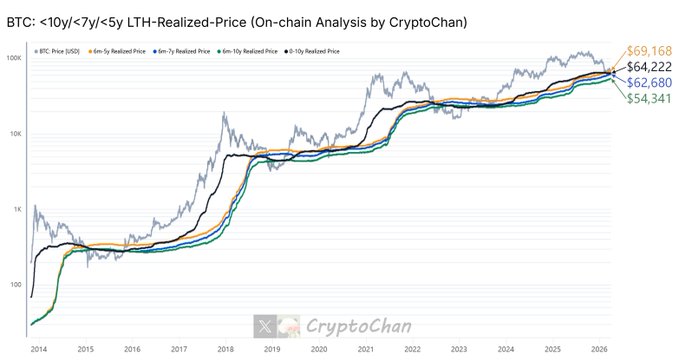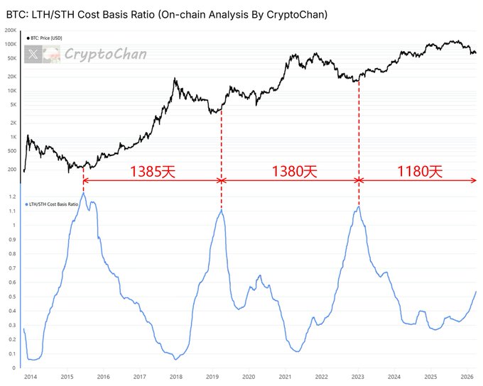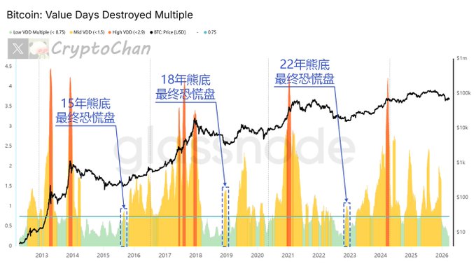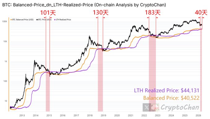 [Four-Year Cycle Series Update📊] Historically, before and after the final drop in each #BTC bear market, the black line has successively crossed below the orange, blue, and green lines.