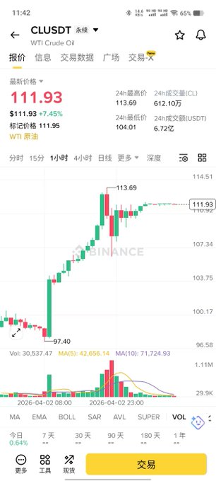 Binance's WTI crude oil, Brent crude oil, and natural gas contracts, launched on April 1st, are currently seeing decent trading volumes. The WTI crude oil contract, in particular, has a 24-hour trading volume of $672 million, ranking tenth on Binance's USDT-margined contract trading list. A quick search shows that yesterday's traditional market WTI crude oil futures trading volume was $57.4 billion, meaning this only represents 1% of the total... there's still significant room for improvement.