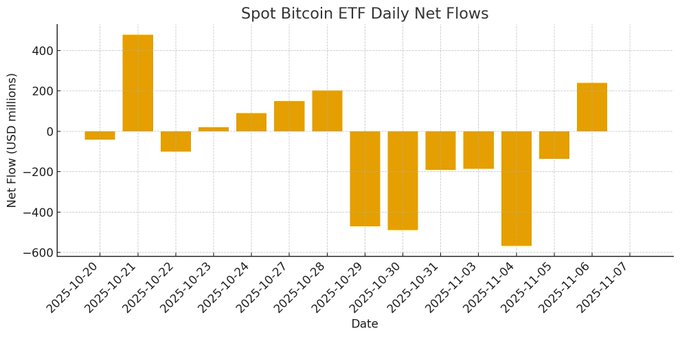 JUST IN: 🇺🇸 U.S. Bitcoin ETFs bought $240 MILLION BTC yesterday, ending six days of outflows