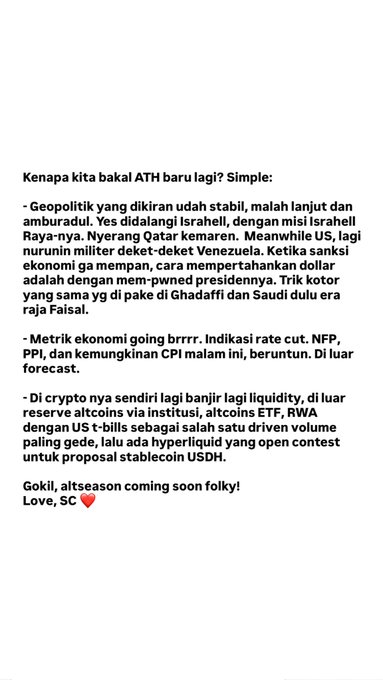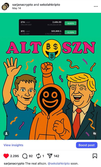 This is why in May 2025, when CT felt Bitcoin had reached its peak, for us, the altseason was just warming up, and the rally was still going to continue. Keep banking! twitter.com/sarjana_crypto/sta...