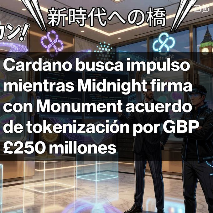 🏦🚀 Tokenization milestone! Midnight, Cardano's privacy-focused network, signs an agreement with Monument to tokenize GBP £250 million in deposits. This marks the first time a UK-regulated bank has used a public blockchain protected by the FSCS. The second phase will include real-world assets and investment-backed loans. This deal could be the catalyst Cardano needs to regain ground in the crypto sector. Historic.