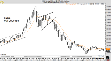 Compare and contrast Often what happens after we see a: 1. Sustained bull trend 2. Spike down after trend 3. Rising wedge retest of top Just pointing it out Don't shoot the messenger Gold now, NASDAQ 2000, DJIA 1929