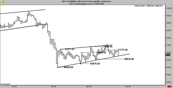Bitcoin setting up for a rising wedge sell signal $BTC
