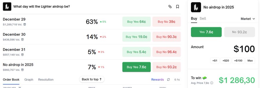 Ngl, a bit tempted to try a small bet on no Lighter airdrop in 2025 to almost 13x the money.