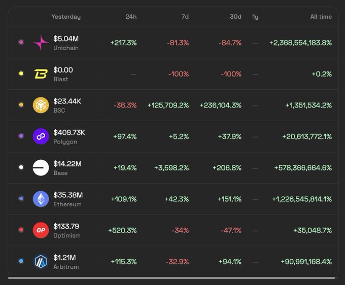 Yesterday, @Uniswap Hooks recorded $56.28M in trading volume, with @ethereum, @base, and @unichain leading the way