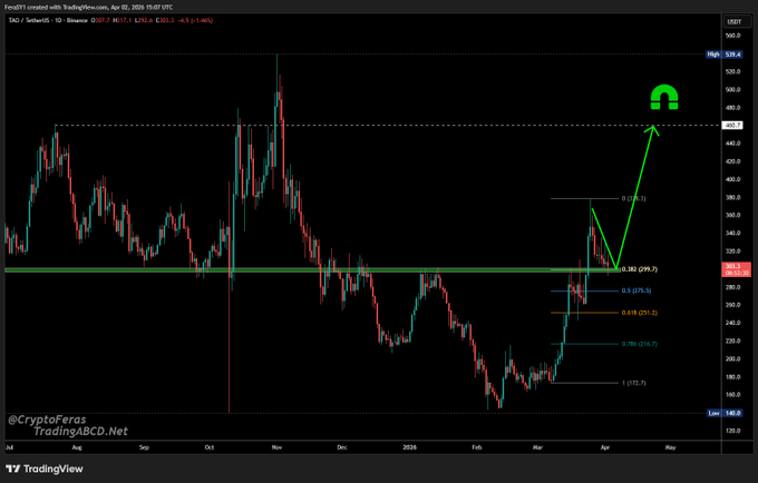 $TAO #TAO keep it simple. #bullish continuation structure is solid 38.2% + s/r retest. Sending it. #trading #taousdt $taousd