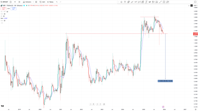 XRP will want to hold this support line. Otherwise it's an 80% drop back to the typical bear lows.