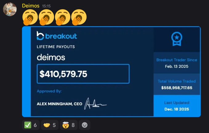 Almost half a ticket in payouts for Deimos. Wonder who will be the first Breakout trader to hit $1 million in lifetime payouts. twitter.com/Tradermayne/status...
