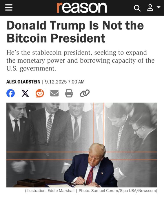New essay up at @reason about how stablecoins have evolved from obscure tool to key pillar of US economic power Bitcoin separates money from state, but stablecoins do the opposite, expanding the fiat system