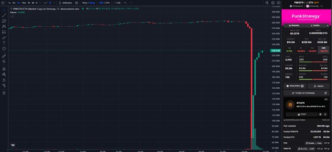 Someone one-clipped $2.83m of PNKSTR lol Tanked the price from 270m to 70m in a single wick The bounce back is real tho