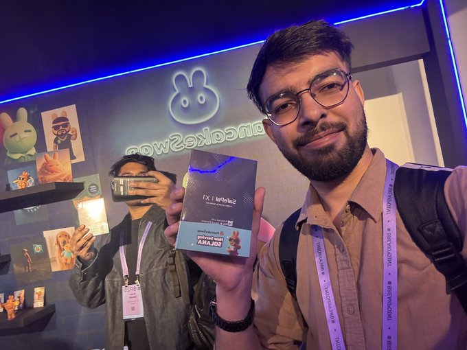 Day 1 of bringing the vibes to @SolanaConf Breakpoint 🟣 Sir Pancake collectibles and @iSafePal X1 wallets stole the spotlight, thanks to everyone who pulled up and grabbed some merch