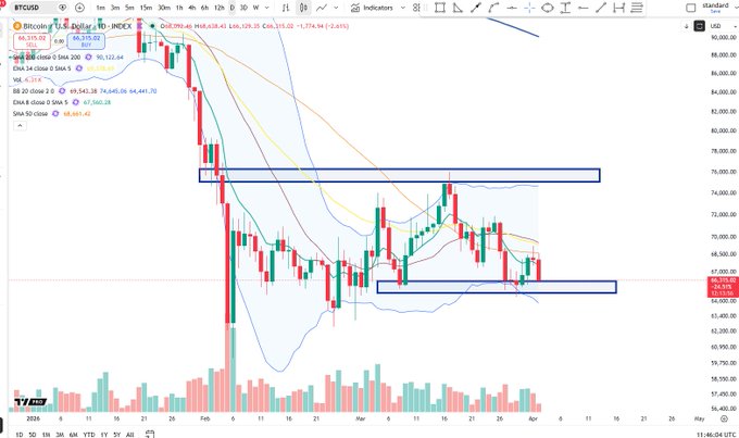$BTC now approaching 66k zone after rejecting at 68.5k as anticipated twitter.com/BigCheds/status/20...
