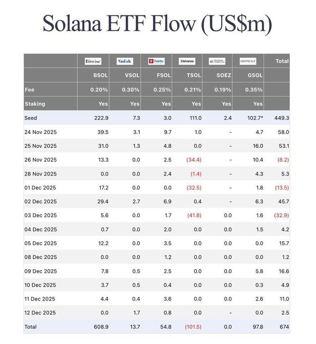 SOL is down about 50% from the highs, but the ETF numbers are still holding up really well. Money has kept coming in even while price has been under pressure, which says a lot about how this dip is being treated. If and when the market turns bullish again, $SOL feels like one of those names that could lead the market.