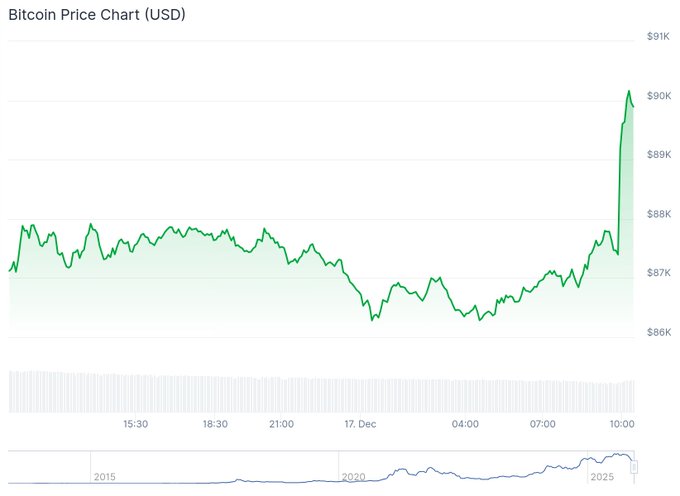 BTC briefly broke back over $90,000 this morning, while most alts are flat today or posting modest gains. Today's market update from @denomko: thedefiant.io/news/markets/bit...…