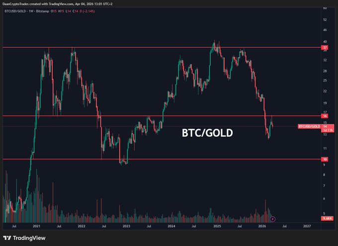 $BTC vs $GOLD still trading at 2022/23 levels from last bear market. Over the long run, I do expect this to go higher. But you need a long time horizon for these kind of moves to play out. Which is pretty evident from this price action the past ~5 years. Obviously gold itself has performed massively over the past 1-2 years which has pushed this ratio as low as it is now.