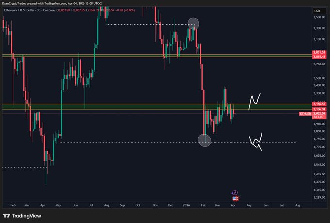 $ETH I'll be interested above ~$2150 or after a ~$1750 sweep. Anything in between is just noise and chop.