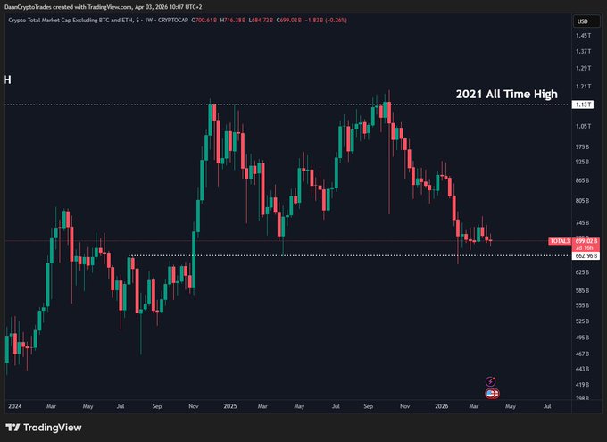 The $TOTAL Altcoin Market Cap is still sitting at this same support area. Right at the April 2025 tariff lows and breakout level post Trump election win. Definitely a region which has seen a lot of action and important events happen previously. So you can understand the importance of holding this area for the bulls.