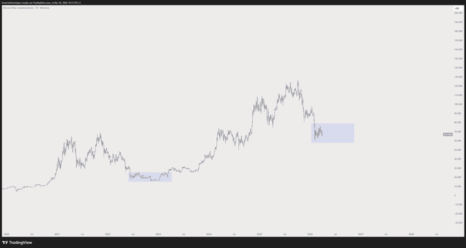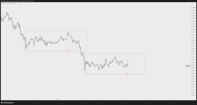 Actual consolidation: 55 days (so far) Previous one: 71 days They are similar, but I think this one will be different $BTC