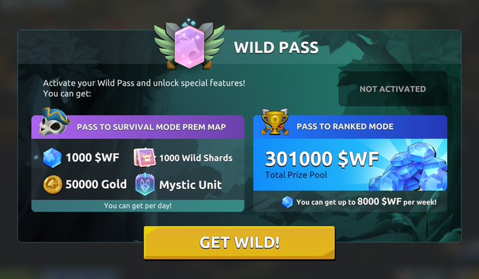 HUGE DISCOUNT ALERT Wild Passes for @playwildforest was $5.99 now $0.99 (limited time only)... Get access to Ranked mode, Premium PvE maps, and daily WF token rewards