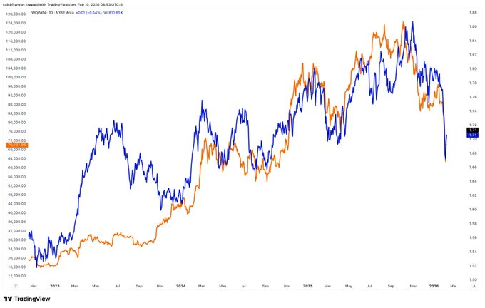 In December/January, Bitcoin could barely hold over $91k. Each attempt would push a bit higher, then fail. Then try again, and fail again. Now, Bitcoin can barely hold over $71k. Multiple attempts. All sold off. It's been that way for 5 days.