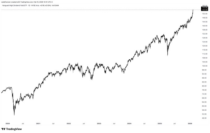 The Vanguard High Dividend ETF $VYM won't blow you away with high-flying returns, but it's amazingly consistent & resilient, especially after adjusting returns for the dividend yield.