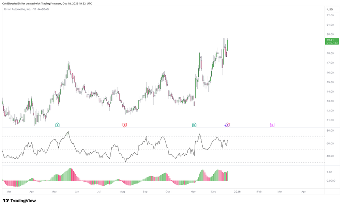 You might look at $RIVN as too pumped to enter. But you’re missing the big picture. This is the ignition signal. This is a the first month that may close out of a 2 year range. $20 is still cheap compared to what this can achieve. $RKLB $HOOD they’ve all done similar. More.