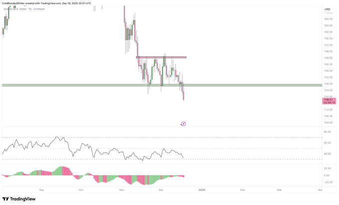 Breakdown confirmed yesterday. Underside LTF retest today, failed. Path to $80 $SOL is underway. twitter.com/ColdBloodShill/sta...