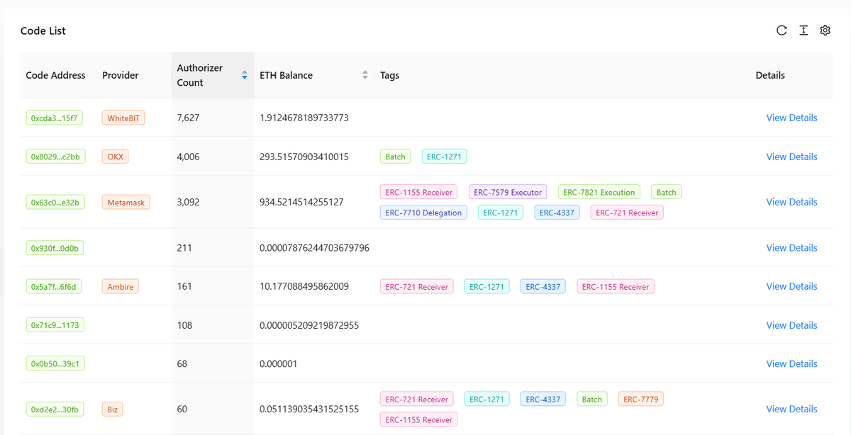 |@0xbbbb_eth has built a beautiful L2Beat-for-EIP7702 dashboard Lots of great insight into different EIP7702 smart account implementations: - TVL - Features (eg. Batch calls) - Method of transacting (eg. ERC4337 bundles) And more! Link in next tweet
