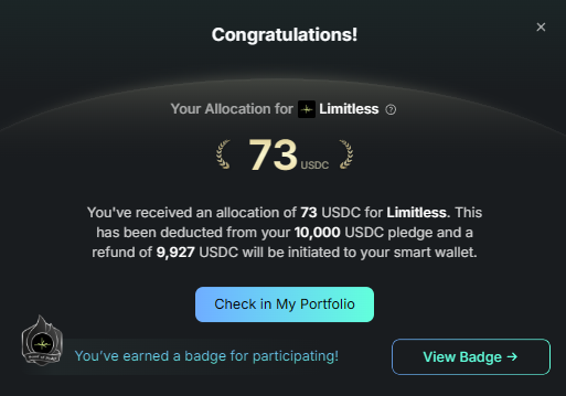 the pain of just getting $73 allocation in @trylimitless kaito sale