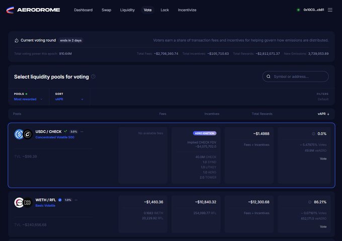 The @AerodromeFi Ignition launches is absolutely goated for voters Option A: Free lottery ticket for new launch Option B: Higher voting rewards if you skip lottery ticket As a degenerate gambler, 100% Option A
