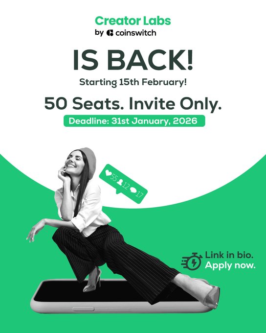 WE HEARD YOU. AND IT IS BACK! 🫡 Creator Labs. Cohort 2. 50 Seats. Invite Only. Apply Now: creatorlabs.coinswitch.co