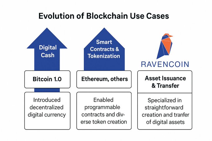 Bitcoin 1.0 = Digital Cash Bitcoin 2.0 = Smart Contracts Bitcoin 3.0 = Ravencoin Why? Because $RVN is built for assets – fast, decentralized, no smart contracts needed. Own. Issue. Transfer. The future of tokenization is simple. #Ravencoin #Bitcoin3 #CryptoAssets #Web3