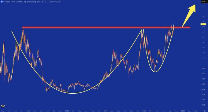 Total Crypto Market Cap (Excluding $BTC & $ETH) Looks like it's primed for a rally to the UPside! We are positioned. Are you? ๐