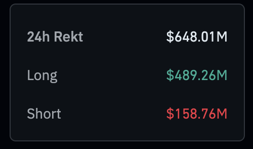 In the past 24 hours, 170,387 crypto traders were liquidated for $648.01 million. ๐