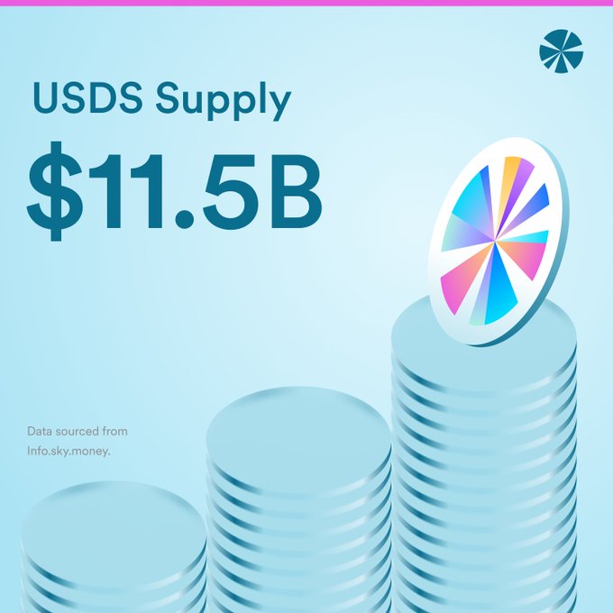 USDS supply just crossed $11.5B for the first time, adding $200M in the last 24 hours alone. With 21% growth in the last 30 days, USDS is the only top 5 stablecoin currently posting double-digit expansion. This continues to align with SFF's year-end target of $20.6B.