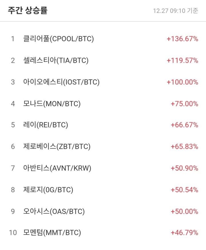 [Weekly Top 10 Coin Trends] Clearful, Celestia, and IOST surge... Strong stocks attract attention with 520% trading volume.