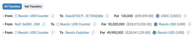 #CertiKInsight 🚨 @ResolvLabs just got exploited. An attacker minted 80M USR using just 300K USDC by exploiting a smart contract vulnerability. skylens.certik.com/tx/eth/0xfe...… skylens.certik.com/tx/eth/0x7f...… skylens.certik.com/tx/eth/0x41...…