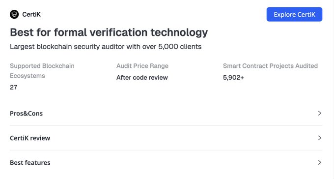 Thanks to @beincrypto for featuring CertiK among the top security solutions in the space. We appreciate the recognition of our work in formal verification and blockchain security, and we remain committed to helping secure the Web3 ecosystem.