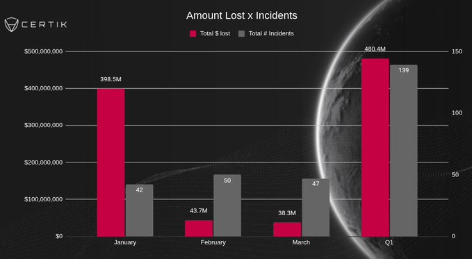 #CertiKInsight 🚨 Since January 1st, 2026, we have recorded 103 security incidents and 36 phishing scams, with an estimated total loss of ~$480M.
