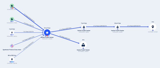 🚨 Beosin Trace is monitoring the stolen funds flow. Currently the funds are held by 0xd12f6e0fa7fbf4e3a1c7996e3f0dd26ab9031a60 (4,267.09 $ETH) and 0x273589ca3713e7becf42069f9fb3f0c164ce850a (4,001 $ETH). twitter.com/BeosinAlert/status...
