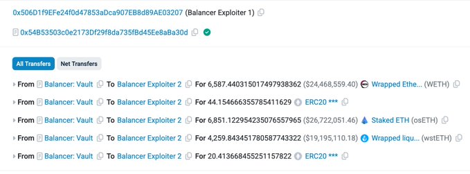 🚨 @Balancer and its forks have suffered from multi-chain attacks. Beosin teams are investigating the vulnerability and tracing the stolen funds.