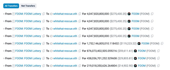 🚨 An exploit/whitehat rescue has been detected on @FOOMCASH and it seems to be another potential victim of misconfigured Groth16 verifier. Txn hash: etherscan.io/tx/0xce20448233f5...…