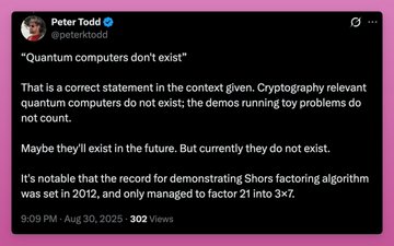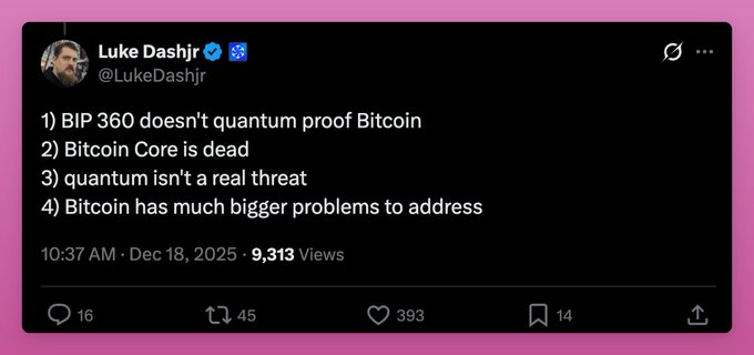 Quantum FUD worries me because three of Bitcoin's most influential devs seem to reject the urgency: - Luke Dashjr: 'BIP 360 doesn't quantum proof Bitcoin. Quantum isn't a real threat. Bitcoin has much bigger problems.' - Peter Todd: 'Cryptography relevant quantum computers do not exist. The demos running toy problems do not count.' - Adam Back: 'Probably not for 20-40 years, if then.' Google’s new 2029 deadline for post quantum migration is just three years away. Bitcoin does have a proposal: BIP 360. It reduces public key exposure but existing coins stay vulnerable until users manually migrate. Satoshi won't do that. On the other side, Ethereum Foundation taking the risk seriously and $ETH is outperforming BTC on the quantum timeline changes. So can Bitcoin Core devs show they are taking the issue seriously? Or is it easier to sell BTC (or rotate to ETH) first and then ask questions?