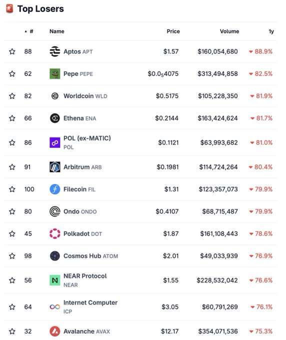looks like aptos took the biggest hit this year, wonder what went wrong with their layer 1 implementation