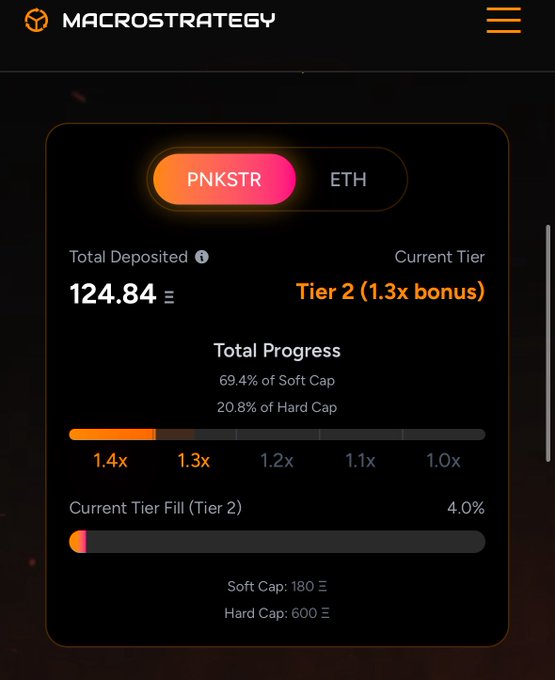 The public sale for @MacroStrategy__ has raised 124eth so far. 69.4% of the way to their soft cap. Nice. Macro strategy is an NFT Strategy fork that will have a master token and then individual tokens for NFT collections. twitter.com/beijingdou/status/...