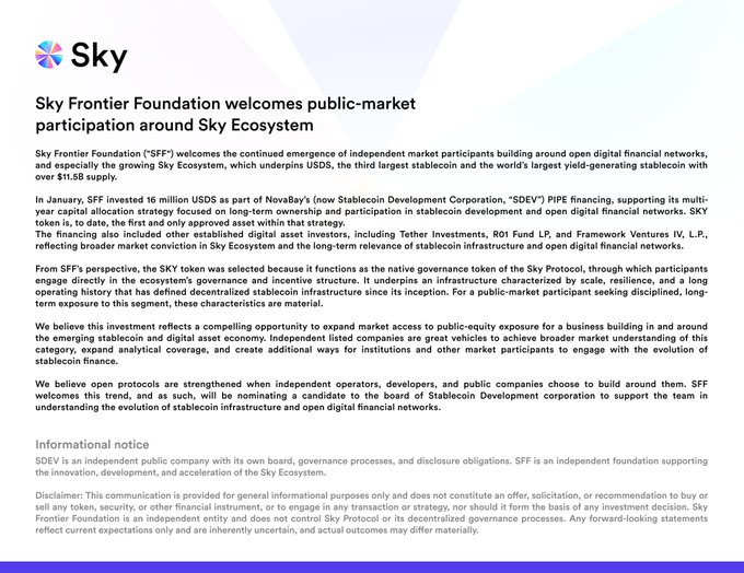 Stablecoin Development Corporation is a hugely ambitious effort to acquire, organize and provide access to Stablecoin Cash Flows, starting with $SKY This effort is backed by @tether and @SkyEcosystem, the #1 and #3 stablecoin issuers, who are partnering strategically