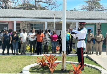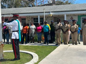 Officers attached to the Cat Island District, along with Island Administrator Mr. Gilbert Kemp, government officials, and members of the public, attended a flag-raising ceremony at the New Bight Government Complex.