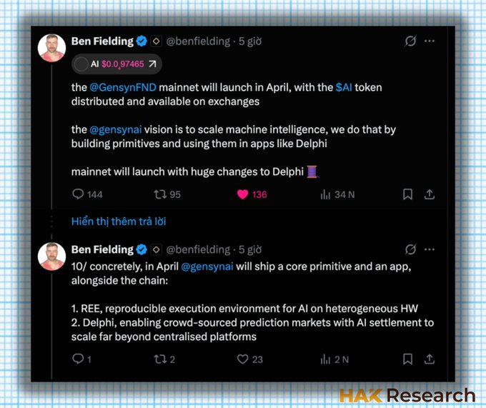 According to the latest update from Co-Founder & CEO @benfielding, Gensyn has officially announced the Gensyn Mainnet launch date, meaning the Token $AI will also be deployed in April 2026.