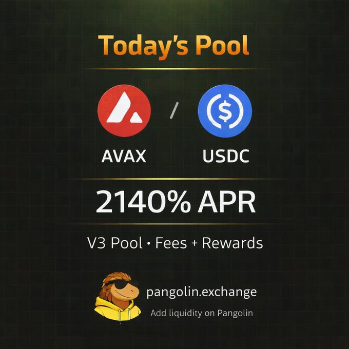 Today's Pool 🔥 2140% APR on $AVAX / $USDC 🔺 Passive daily offer. Active yield. 💰🔥 👉 http:/app.pangolin.exchange/po...