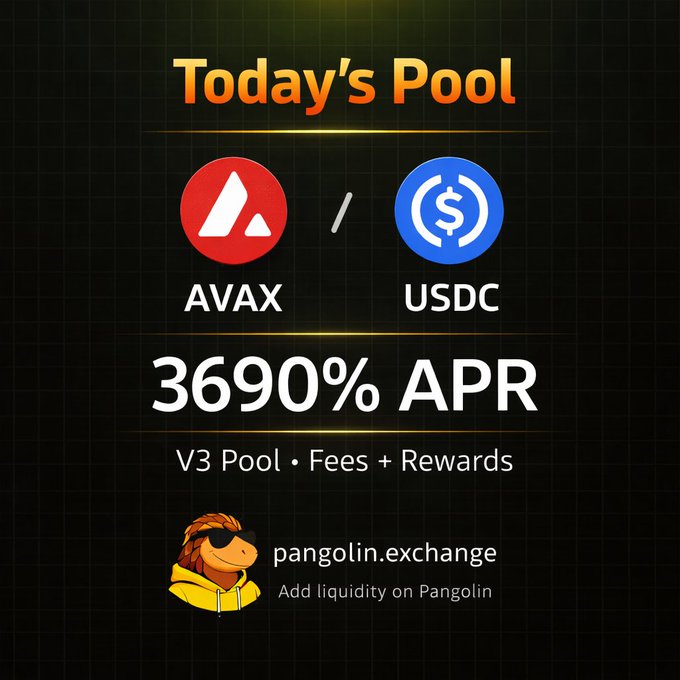 Today's Pool 🔥 3690% APR on $AVAX / $USDC 🔺 Passive daily offer. Active yield. 💰🔥 👉 http:/app.pangolin.exchange/po...